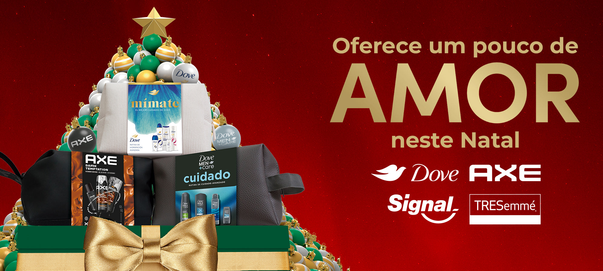 Este Natal, transforma cada presente num gesto de amor. Descobre com a Unilever o poder de oferecer bem-estar com Dove, Axe, Signal e TRESemmé